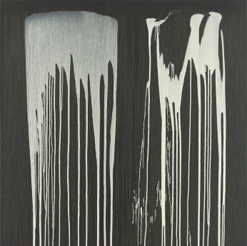 After developing her iconic 'Waterfall' series where “gravity makes the image,” Steir continued exploring the fluidity of paint with various influences from landscape painting and increasingly subtle washes of paint pours. Starting in the mid 2000s, she began making 'split' canvases — playing off of Barnett Newman’s signature style, a process she continues to develop today. Often these works paradoxically evoke a deep space and call attention to their own flat materiality, a product of the systematic series of paint pours and chance-based chemistry. Moreover, this represents her own conceptual interests akin to classical Chinese painting, which embody binaries in order to form a harmonious whole.