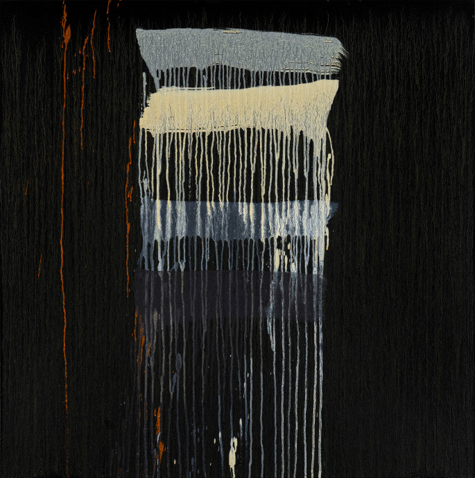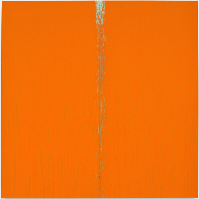 After developing her iconic 'Waterfall' series where “gravity makes the image,” Steir continued exploring the fluidity of paint with various influences from landscape painting and increasingly subtle washes of paint pours. Starting in the mid 2000s, she began making 'split' canvases — playing off of Barnett Newman’s signature style, a process she continues to develop today. Often these works paradoxically evoke a deep space and call attention to their own flat materiality, a product of the systematic series of paint pours and chance-based chemistry. Moreover, this represents her own conceptual interests akin to classical Chinese painting, which embody binaries in order to form a harmonious whole.