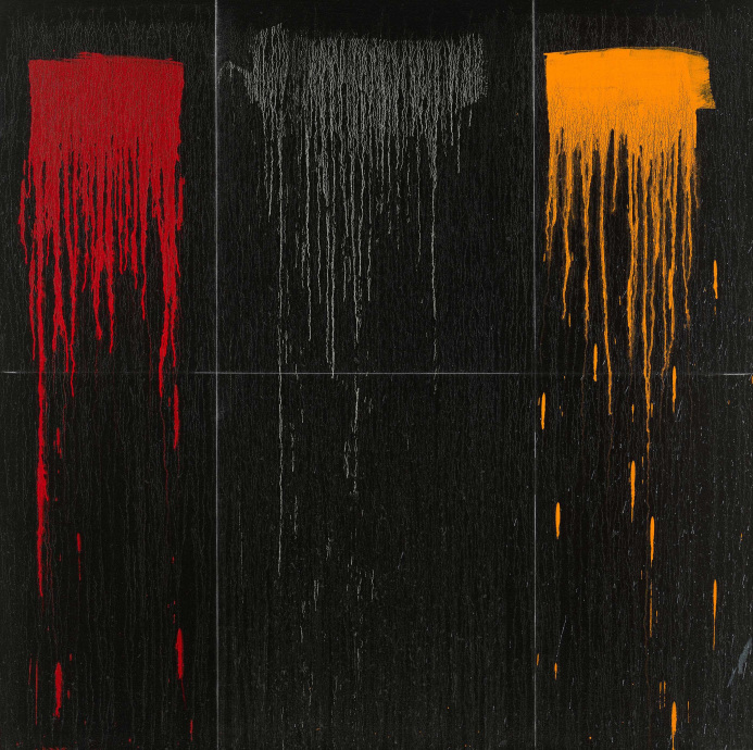 Associated with Conceptual Art and Minimalism and through a close study of Eastern painting, Steir’s contemporary process was developed in the 1980s with her acclaimed Waterfall paintings. Her early work explored floral motifs often combined with a grid or color field, blurring the distinction between abstract and figurative work. Steir continues to self-reflexively explore the grand history of painting in her work. In these early pieces, she would occasionally utilize overt references to specific art historical gestures and styles in her depiction of flowers, sometimes negating the image with a cross in a conceptual interrogation of iconography.