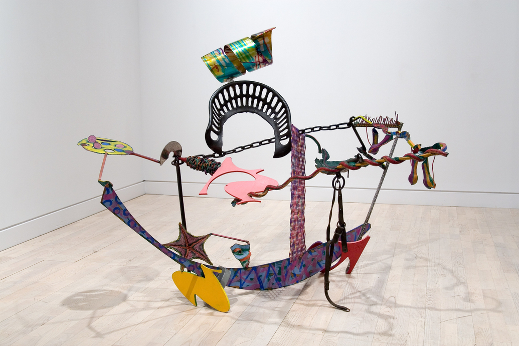 iron, stainless steel, aluminum, leather, bronze with polychrome patina