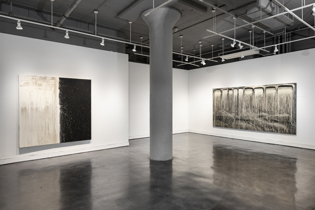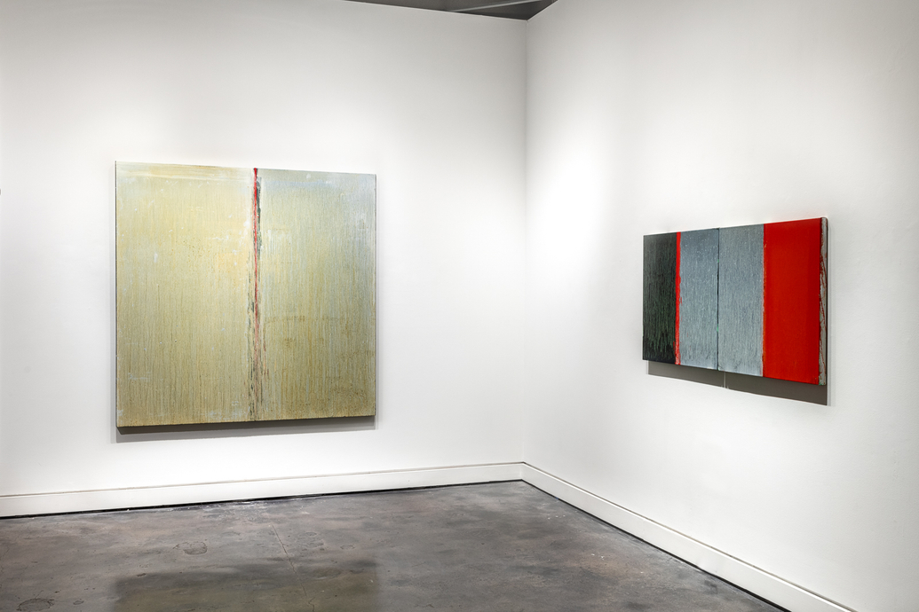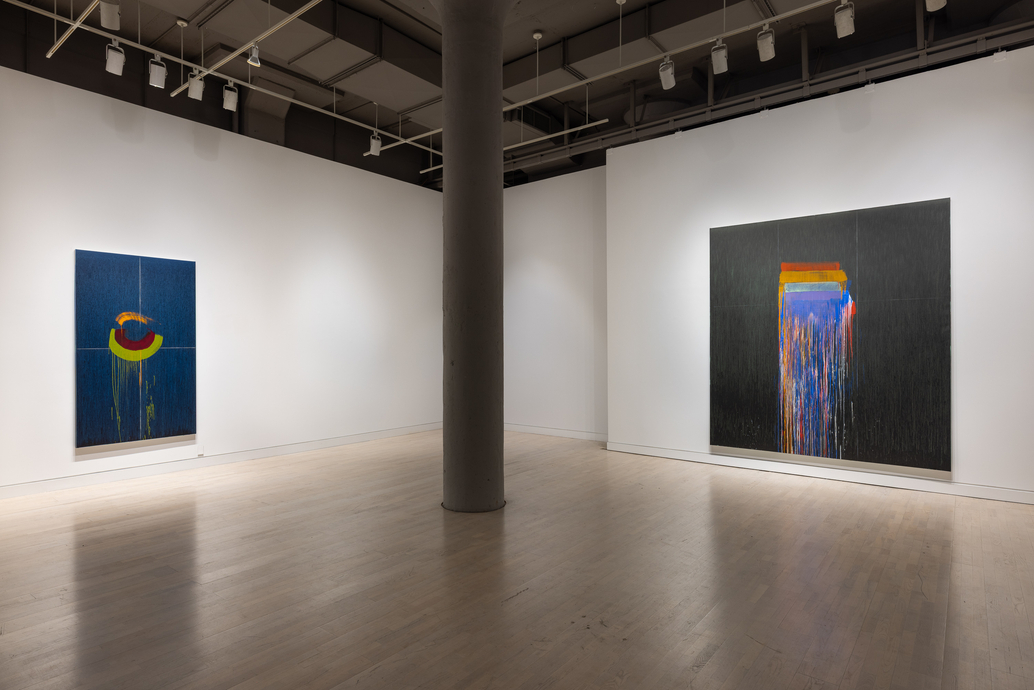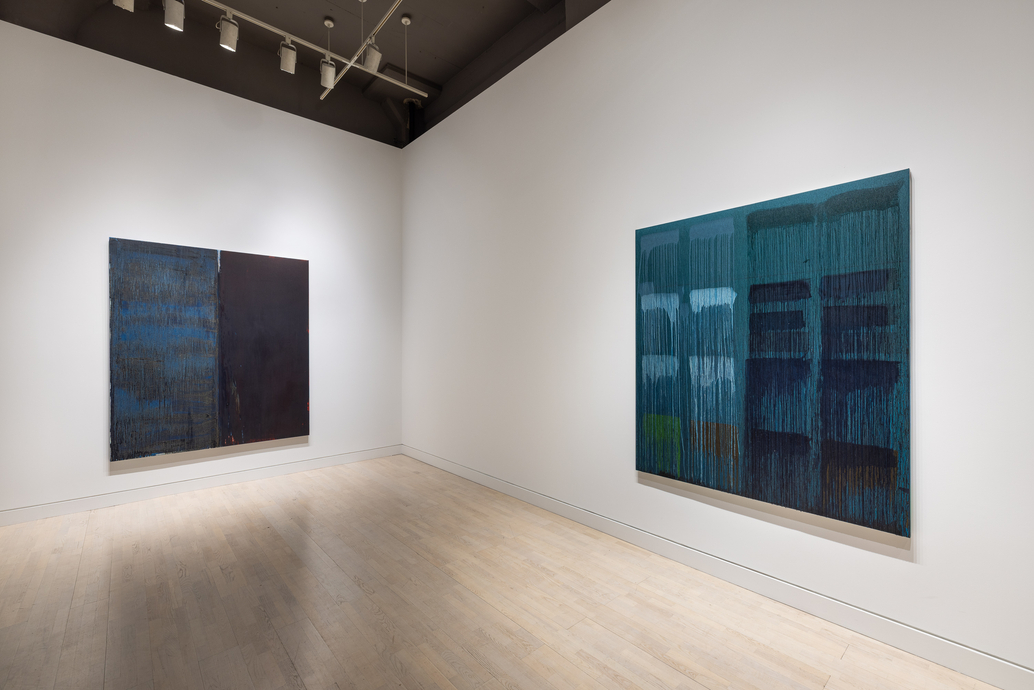 After developing her iconic 'Waterfall' series where “gravity makes the image,” Steir continued exploring the fluidity of paint with various influences from landscape painting and increasingly subtle washes of paint pours. Starting in the mid 2000s, she began making 'split' canvases — playing off of Barnett Newman’s signature style, a process she continues to develop today. Often these works paradoxically evoke a deep space and call attention to their own flat materiality, a product of the systematic series of paint pours and chance-based chemistry. Moreover, this represents her own conceptual interests akin to classical Chinese painting, which embody binaries in order to form a harmonious whole.